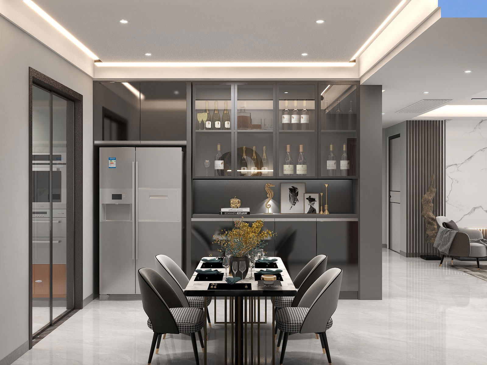 本案特點:整個設(shè)計融合中西文化與現(xiàn)代審美,既有中式的莊重韻味,又有現(xiàn)代的優(yōu)美大方。石材、金屬線條的運用,整體空間感更加豐富。