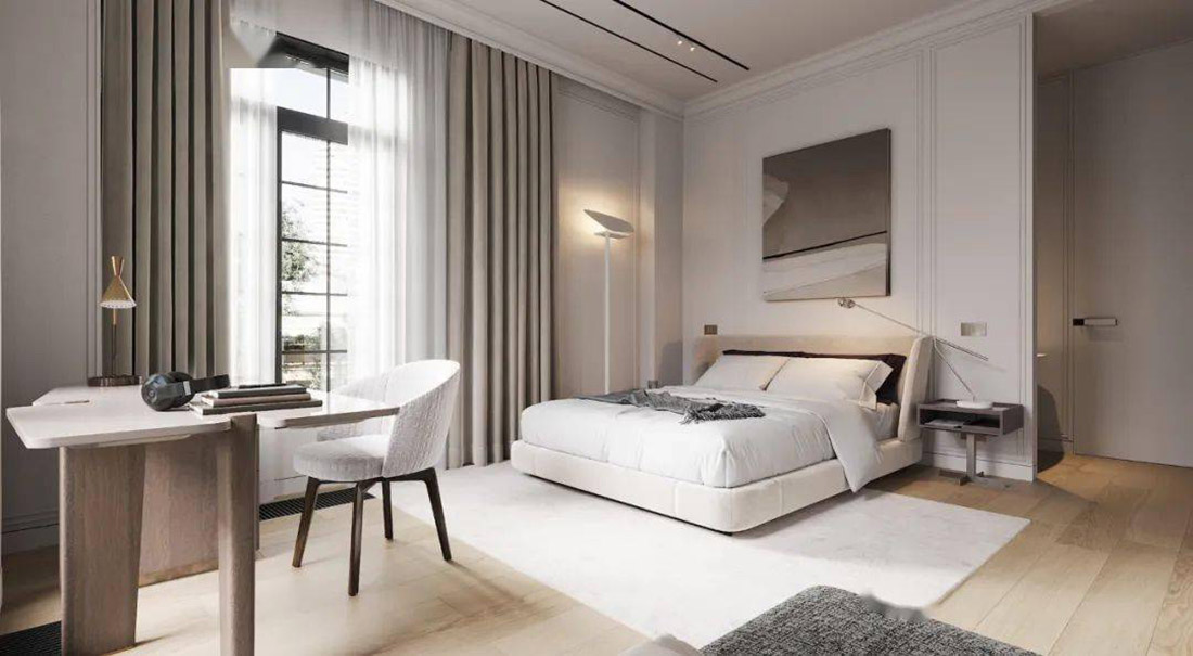 主臥在床尾放了一張書桌,平常業(yè)主加班或者看書都可以使用