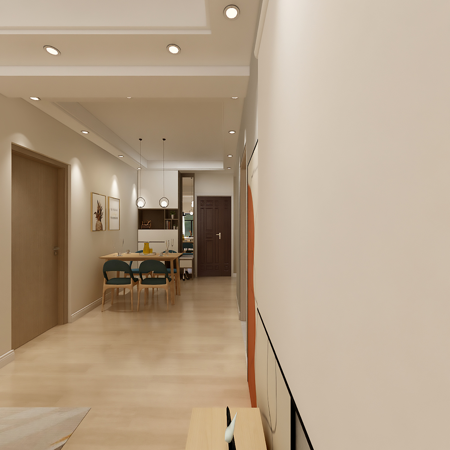 設(shè)計(jì)理念:北歐風(fēng)格家居設(shè)計(jì),簡潔 干練 溫馨 讓家中呈現(xiàn)一種自然的舒適 干凈之美,木質(zhì)地板,白色暖點(diǎn)的墻面,餐桌椅就像那木質(zhì)餐桌,一股濃濃的溫馨北歐范,更顯明朗與溫馨。