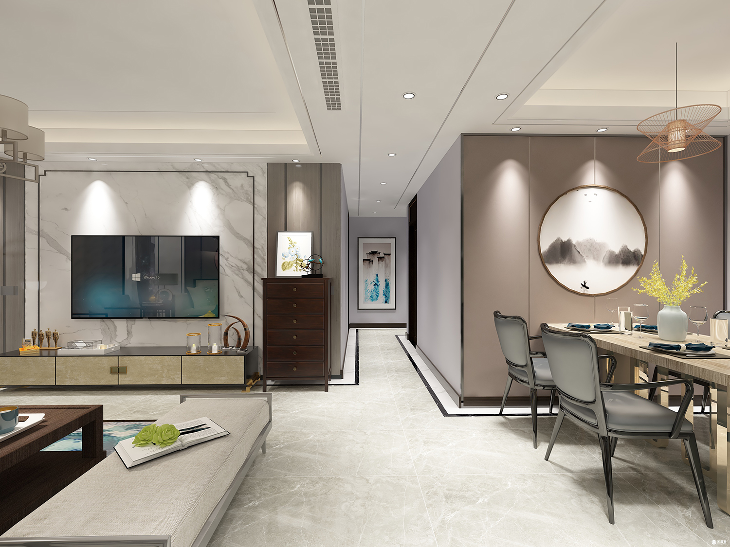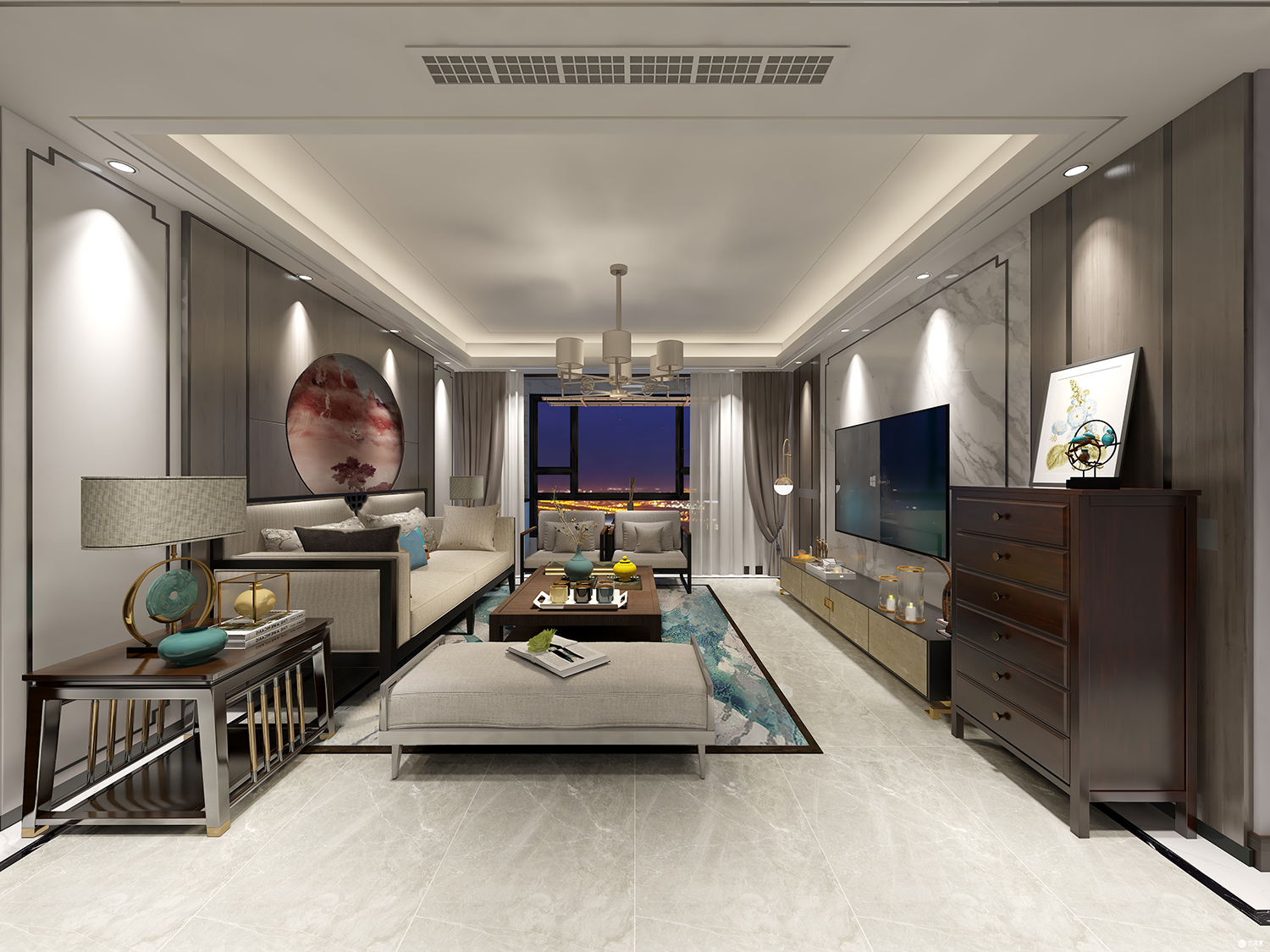 亞星盛世雅居154㎡四居室新中式裝修效果圖
