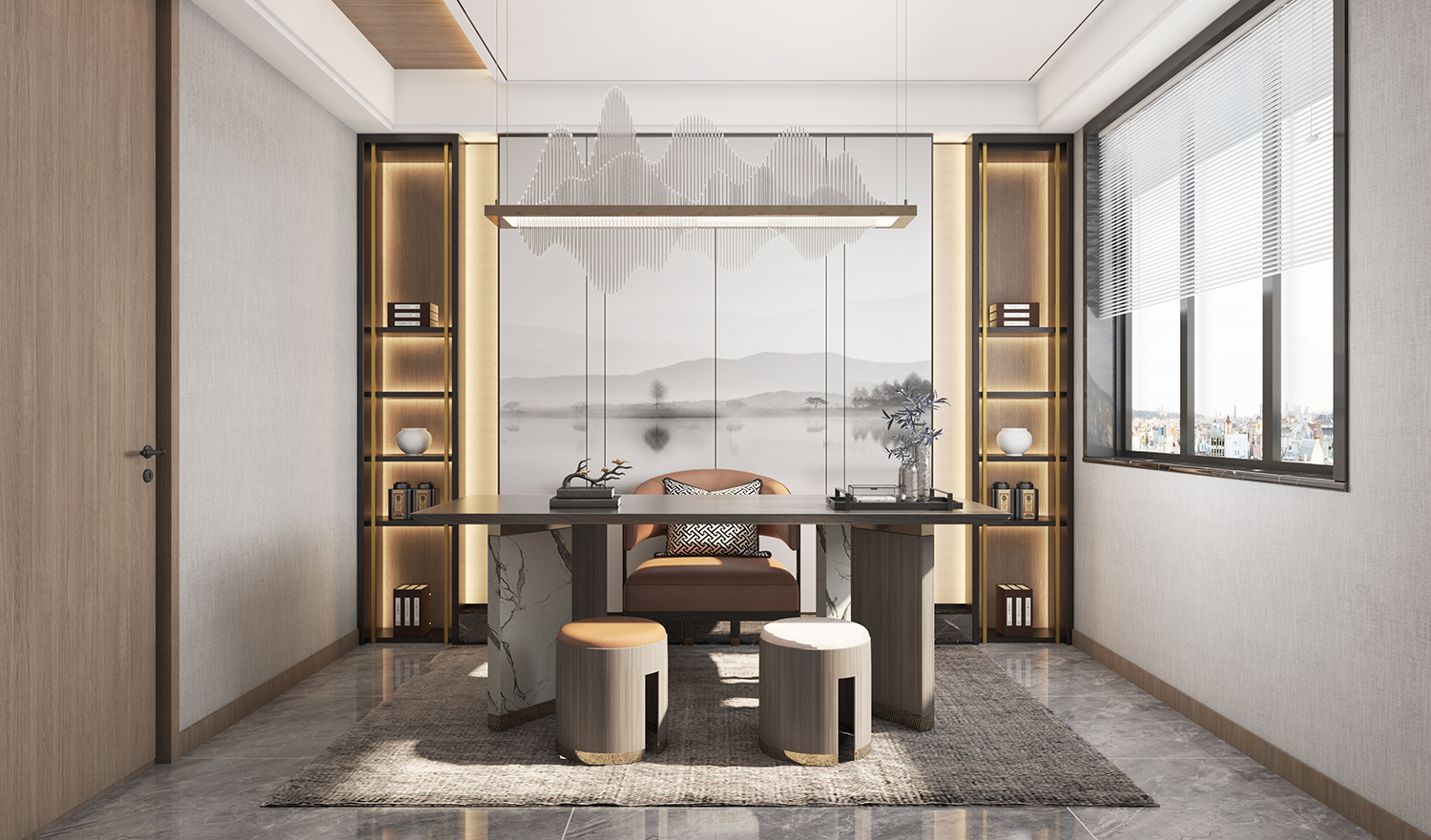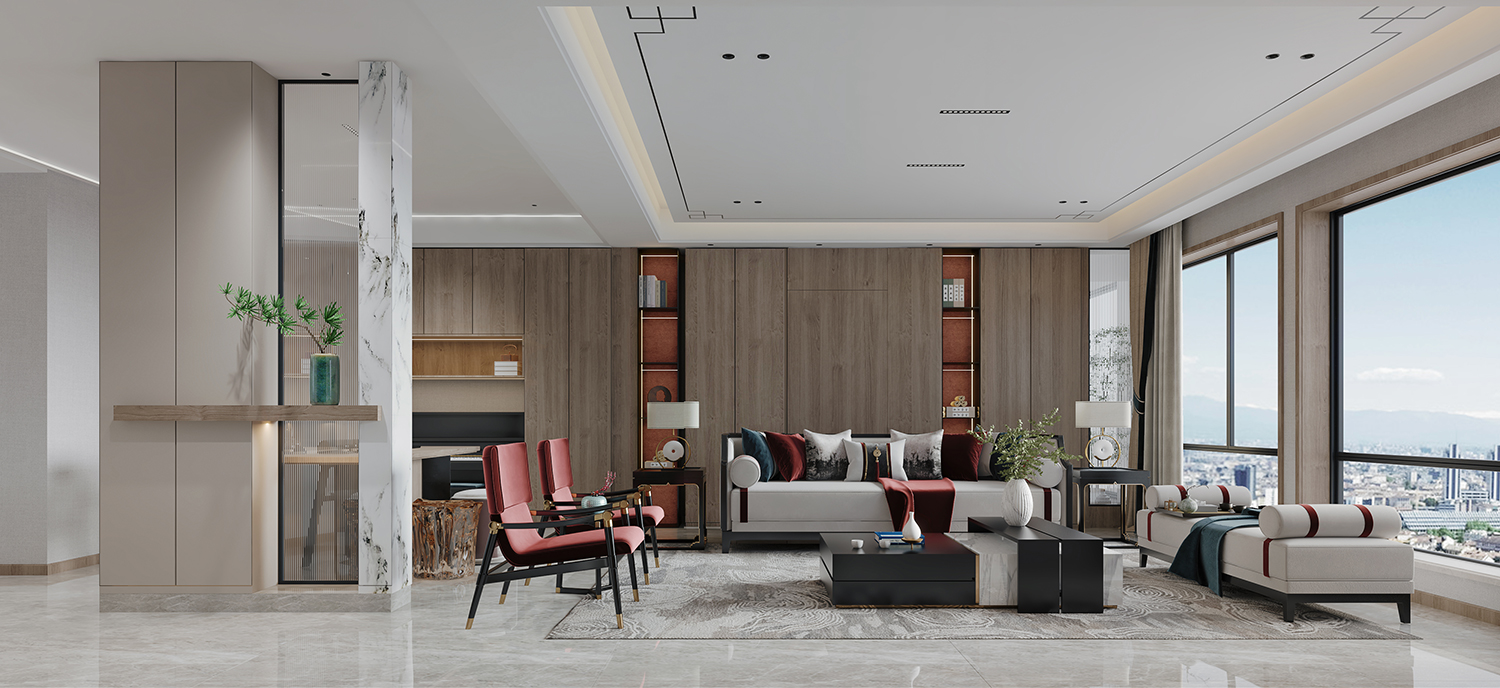 設(shè)計(jì)理念:此戶型風(fēng)格定義為新中式,用室內(nèi)建筑的概念去把握空間的對(duì)位關(guān)系,布局開敞,開放式的茶室與客廳融為一體,寬敞別致又靈活多變。游走在流轉(zhuǎn)的動(dòng)線,都經(jīng)過精心計(jì)算,理性之美隱約可見。淺灰色系大板磚,無主燈設(shè)計(jì),極簡(jiǎn)的設(shè)計(jì)理念不張揚(yáng)卻提供了恰當(dāng)?shù)谋尘耙r托。更能顯出低調(diào)奢華的新中式之美。