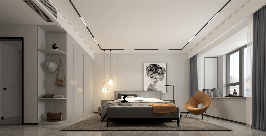 主臥空間感很強,簡約透著日式的寧靜,可以包容生活中所有的情緒,給心靈一處回歸的居所。