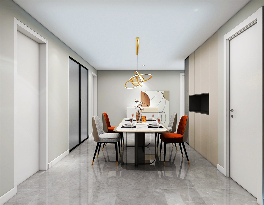 一張巖板餐桌搭配四張餐椅,簡(jiǎn)約而不簡(jiǎn)單,旁邊再放上裝飾畫(huà),整個(gè)空間變得有滋有味。