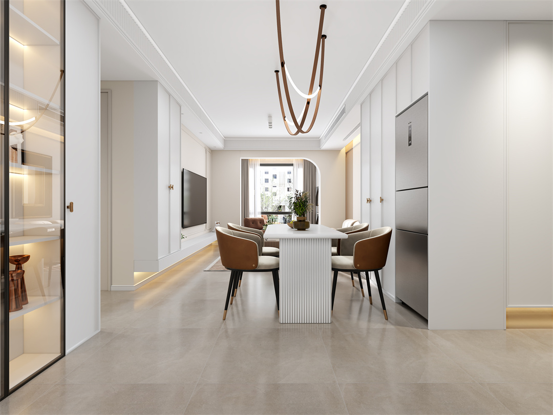 餐廳采用溫馨的白色和咖啡色,使整個空間更加寬敞大方又富有生命力。餐桌上方的精致吊燈十分優(yōu)雅,讓整個就餐空間里的溫馨與舒適,在不經(jīng)意間就流露出來。