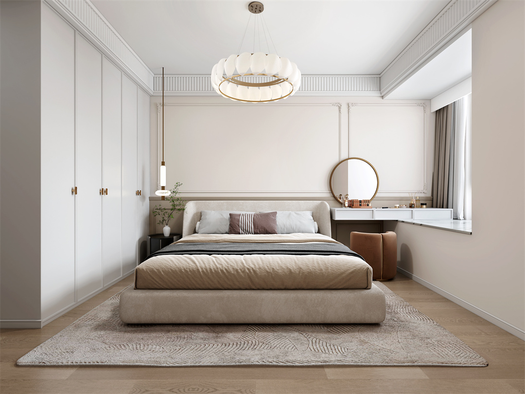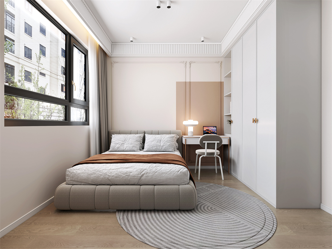 主臥采用簡約的線條進(jìn)行裝飾,去掉傳統(tǒng)床頭柜,飄窗梳妝臺相結(jié)合,給人眼前一亮的感覺,柔和的光線更顯舒適。