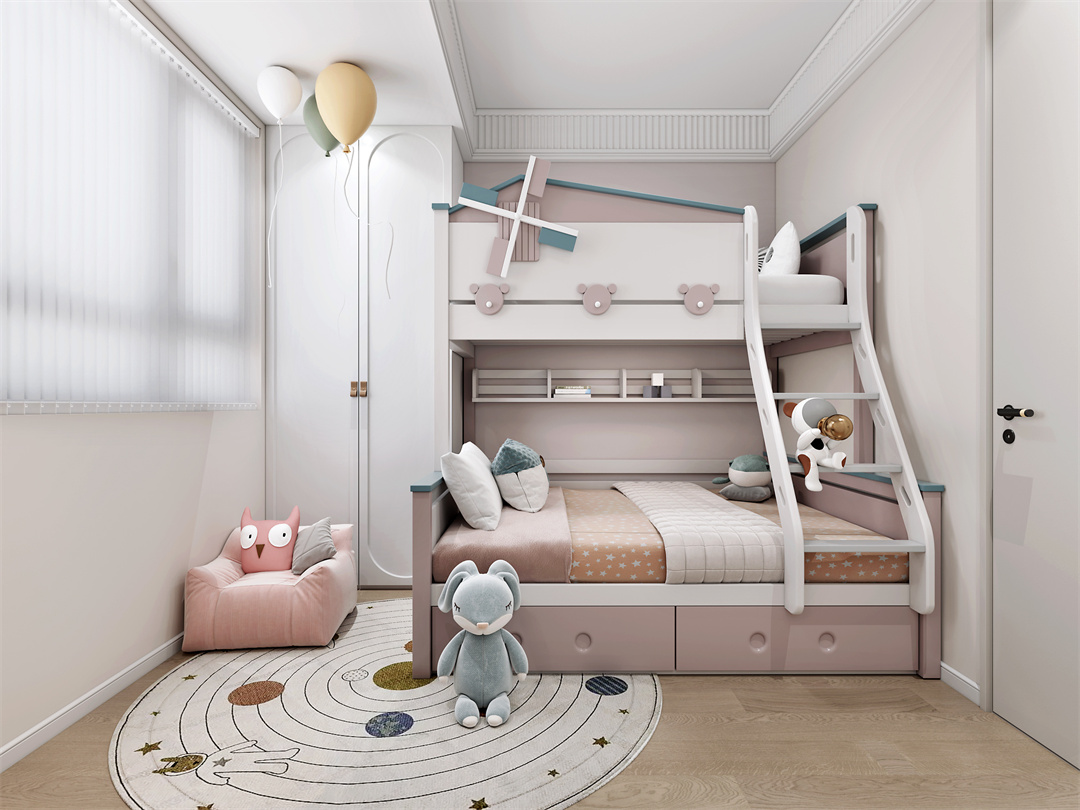 粉色精致的高低床,可以節(jié)省室內(nèi)空間,讓孩子有更多的空間玩耍,也可以讓孩子爬上爬下非常有樂趣