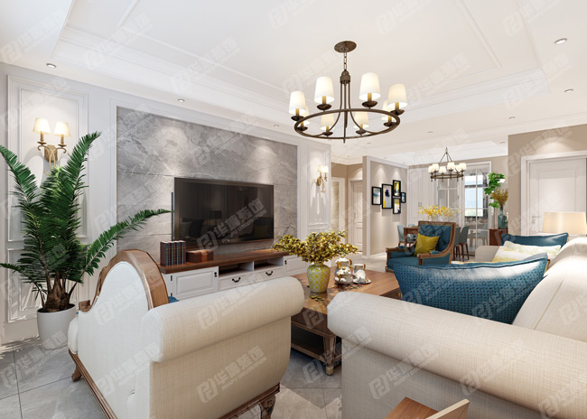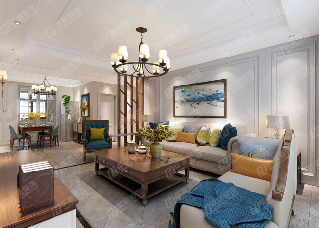 客廳,幾乎沒有在硬裝上耗費太多的心血,主要通過軟裝來烘托出美式的生活基調。