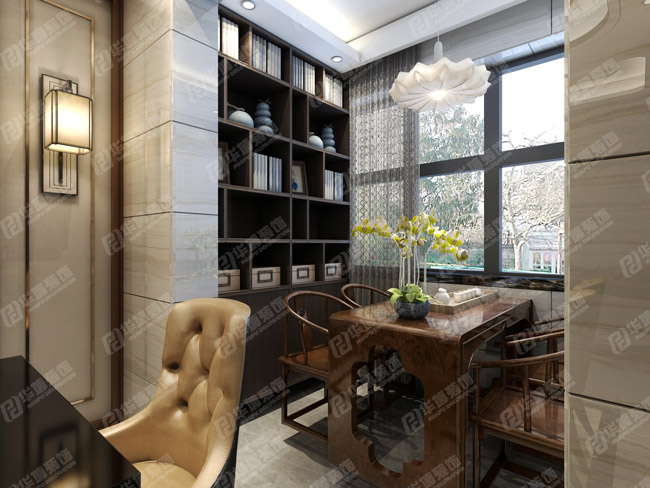 金沙湖高爾夫官邸145平新中式風(fēng)格書房裝修效果圖