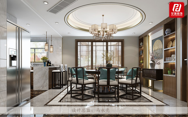 丹桂園370平復(fù)式新中式風(fēng)格餐廳裝修效果圖