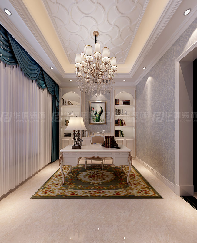 金域藍(lán)灣430平簡(jiǎn)約法式風(fēng)格書(shū)房裝修效果圖