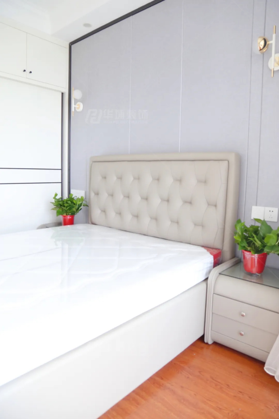 整個戶型屬于南北通透,采光非常棒,再加上灰、白、米三色的襯托,臥室顯得特別敞亮、開闊。