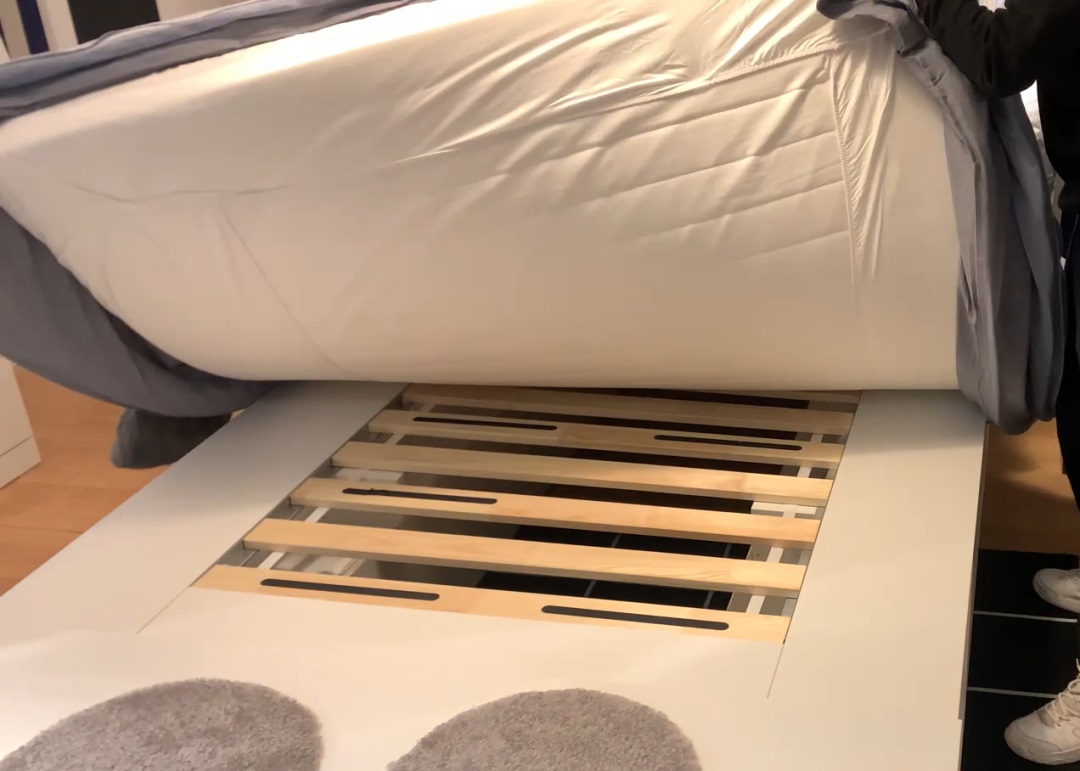 溫馨提示:床墊下面用排骨架做支撐,增加透氣性,不要把床體收納作為儲物的第一目的。