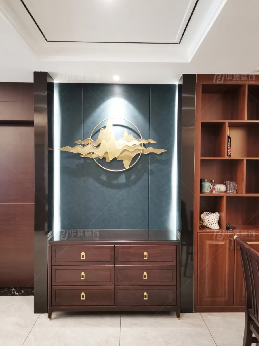 從毛坯到入住,每一個(gè)細(xì)節(jié)的推敲,每一次順暢的溝通,都為工程的完美收官奠定了基礎(chǔ)!山色明月照,到來詩(shī)景繞。端景裝飾寓意開放包容,山河綿延卻又在方圓之間,將現(xiàn)代中式的詩(shī)性與意蘊(yùn)煥活于空間。