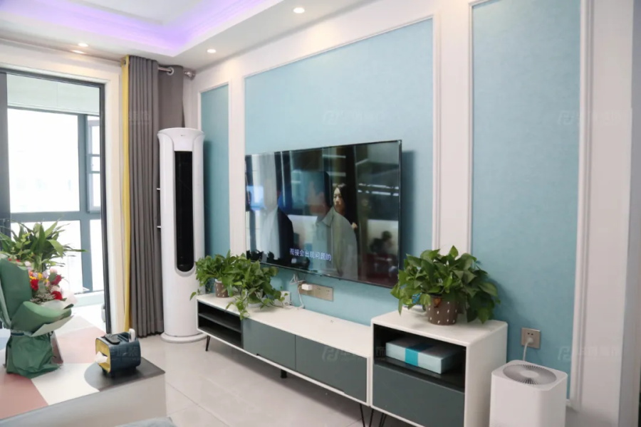客廳以莫蘭迪配色,灰+藍(lán)+白,沁人心脾的“穿搭”,好清爽!背景墻壁布+石膏線,燈槽吊頂三色閃動(dòng),平平無(wú)奇的點(diǎn)綴,卻叫人心生歡喜,真的好舒服。