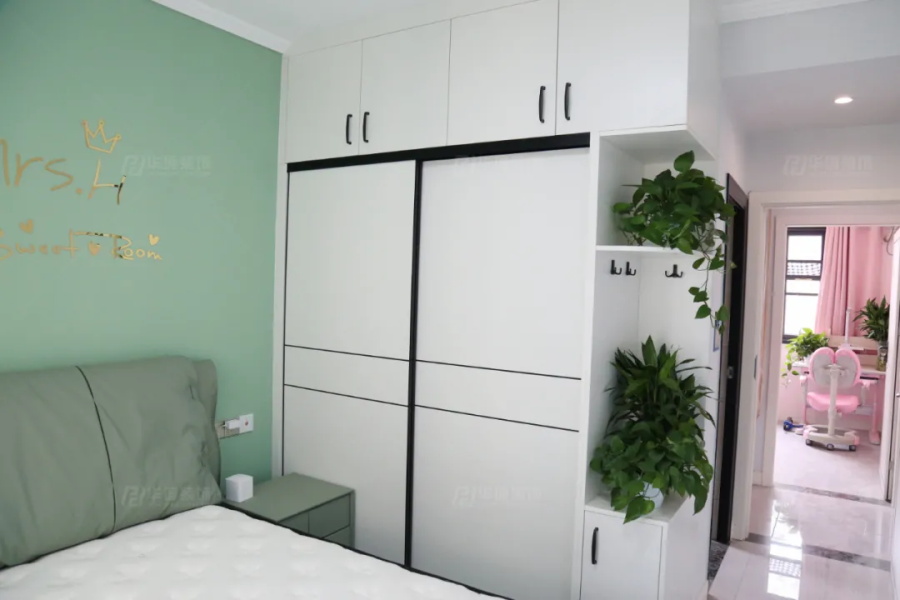 綠色是主空間色,作為清新中性的色彩,它自然而素雅,給人亮眼、元?dú)獾臍赓|(zhì)感。衣柜轉(zhuǎn)角做了圓弧設(shè)計(jì),避免小朋友磕碰,貼心的細(xì)節(jié)處理,滿滿的幸福感。