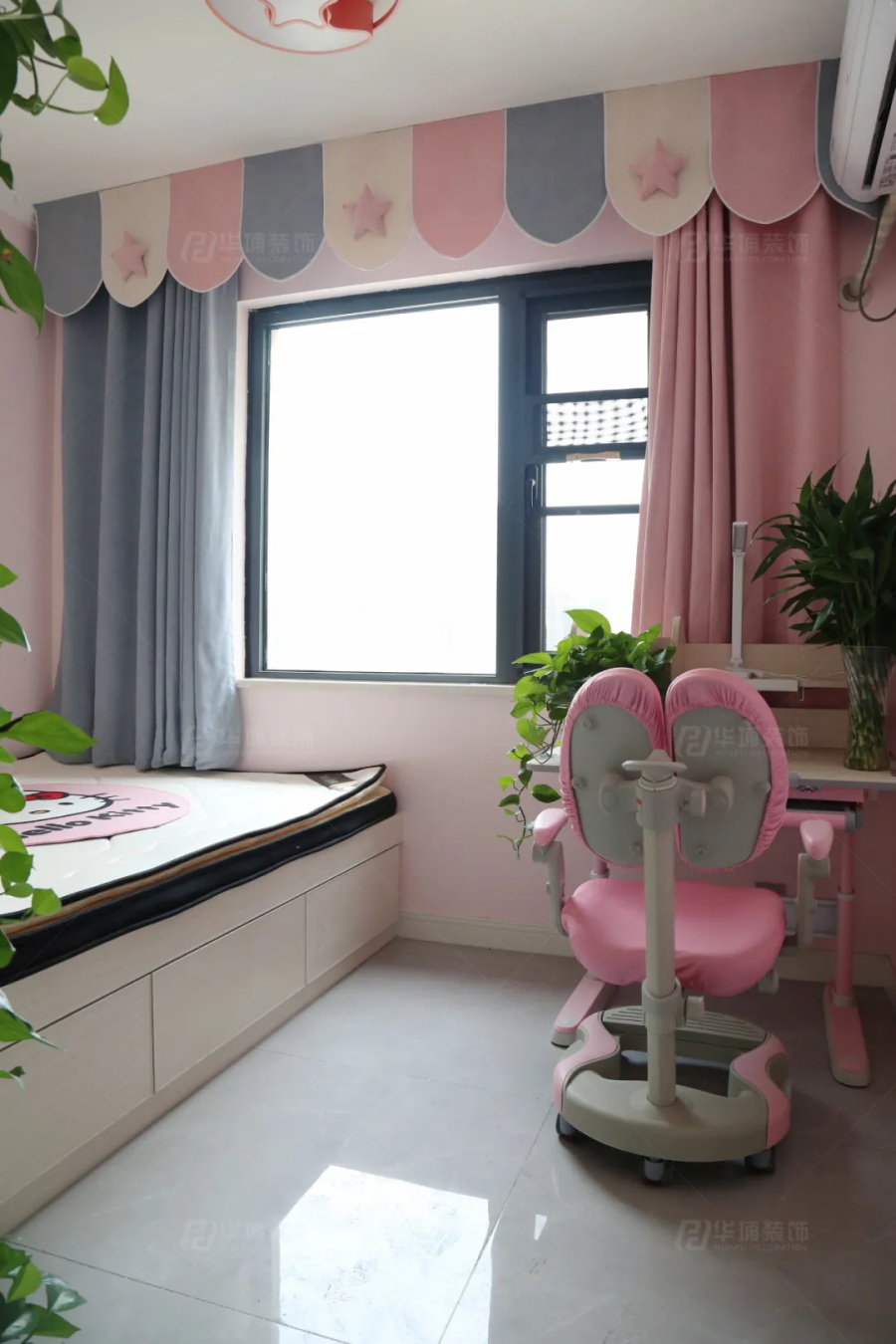 這是小公主的房間,入眼即萌寵。煙灰粉、純凈白,將小朋友干凈純粹的童真書(shū)寫(xiě)。女兒房空間有限,采用了榻榻米+衣柜+靠窗書(shū)桌的形式呈現(xiàn),留最大的空間給小朋友戲耍。