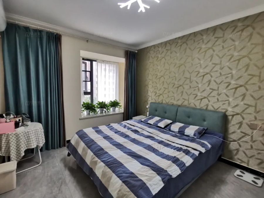 主臥沒有那么強烈的色彩差,不同尺度的綠色、藍色在同一空間里呈現(xiàn),淡然而有詩意。