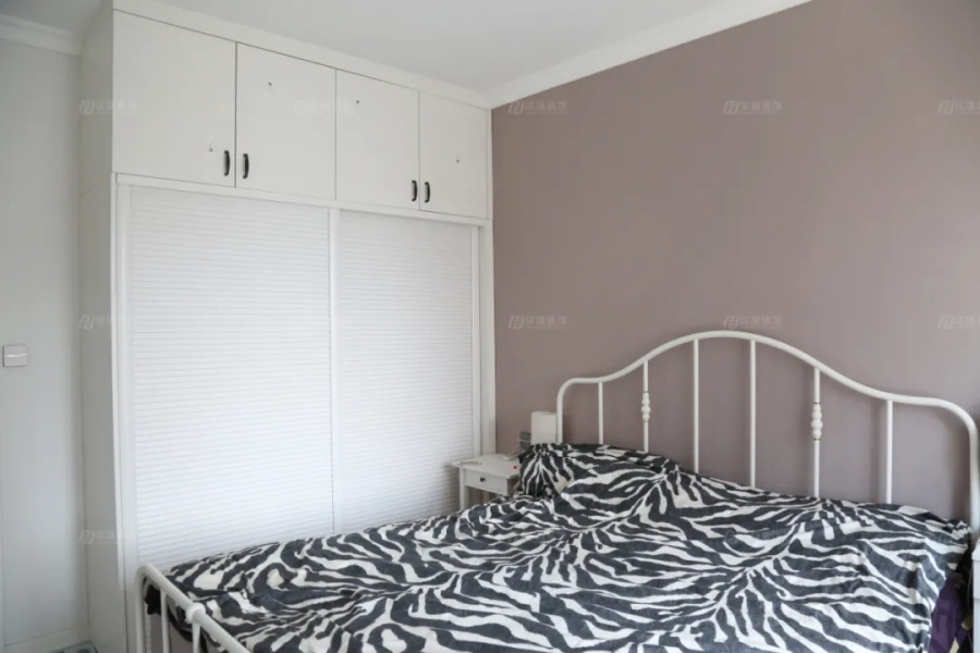 主臥以白色+煙灰色為主,鐵藝的雙人床,頂天立地的衣柜,敞亮的飄窗,承載生活的點滴溫情。