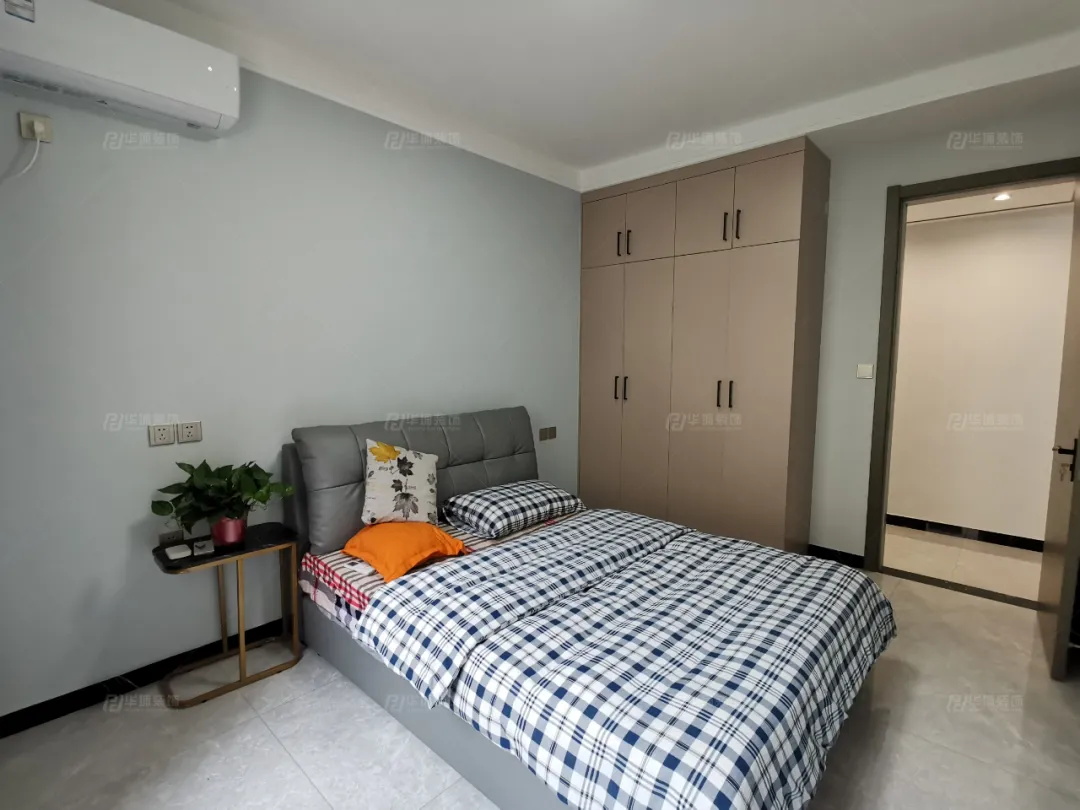 主臥有著超大空間,配色大方,陳設(shè)清減,平實(shí)而精致,給人很輕松的視覺享受。