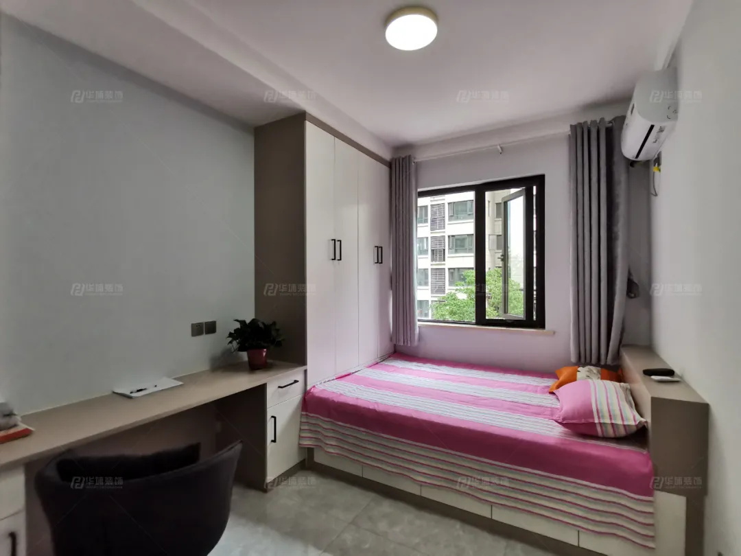 兒童房以榻榻米+衣柜+書桌設(shè)計(jì),簡單干凈的配置,簡約舒適的生活。