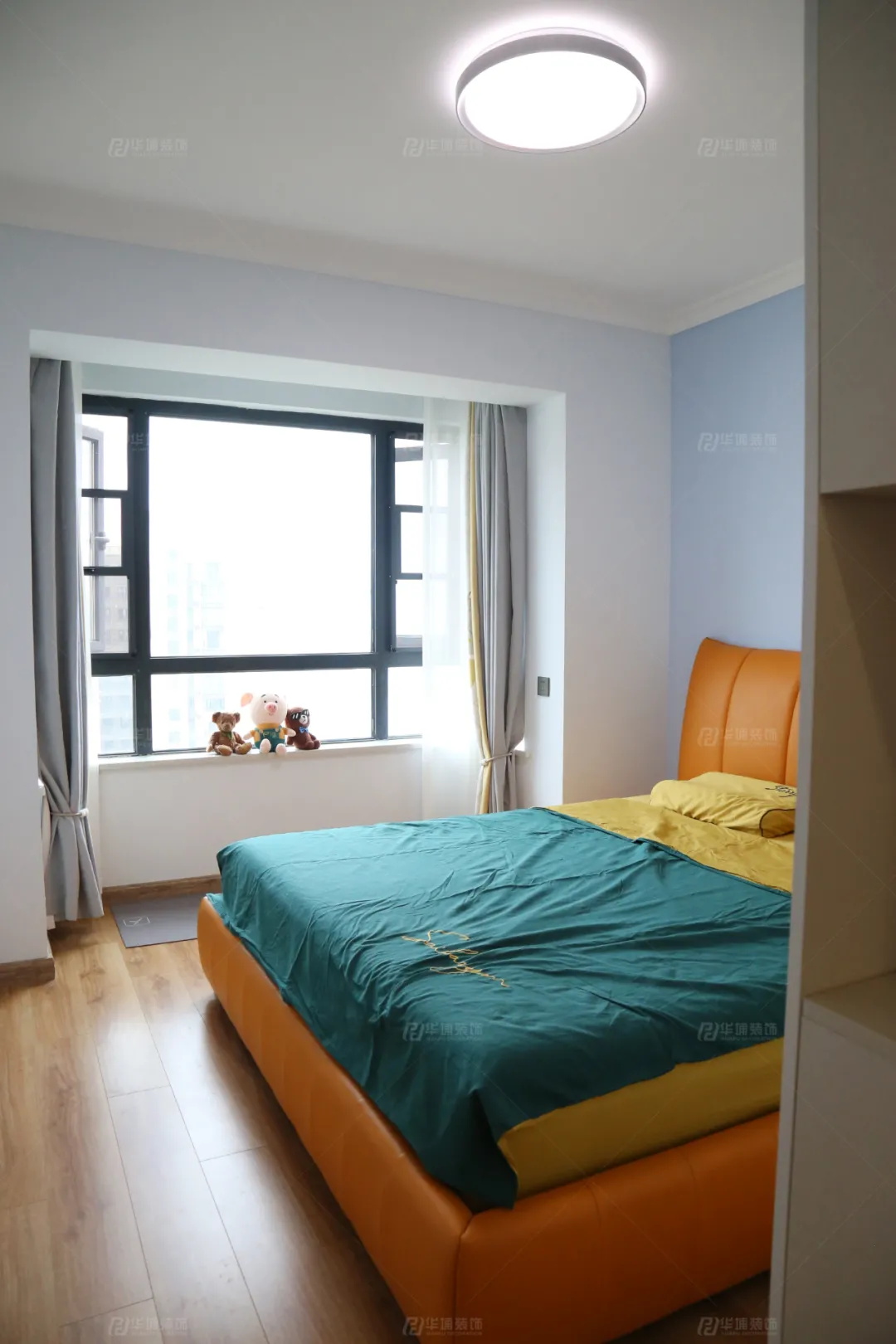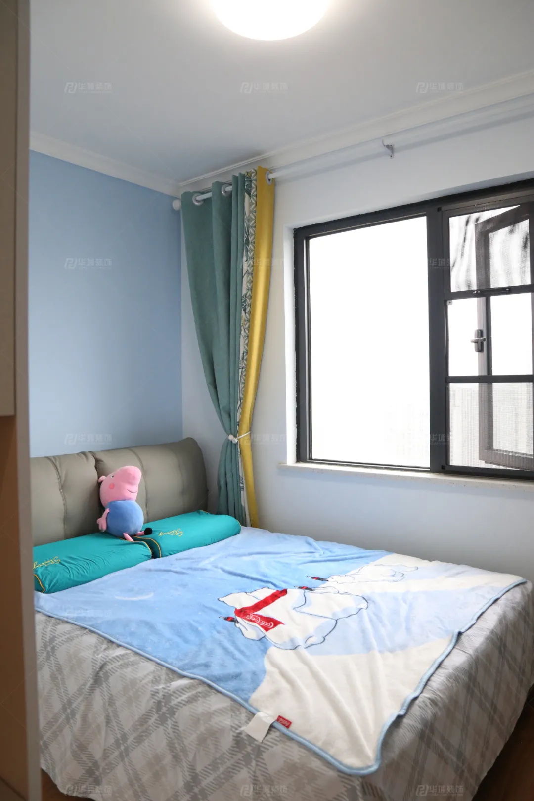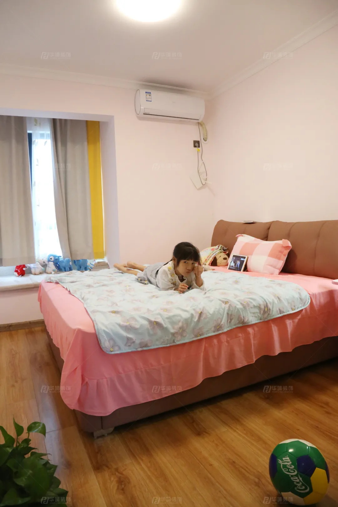 兩個次臥一粉一藍(lán),沒有太多的陳設(shè),簡單以床+衣柜+窗簾點綴,暖暖的,超有愛。