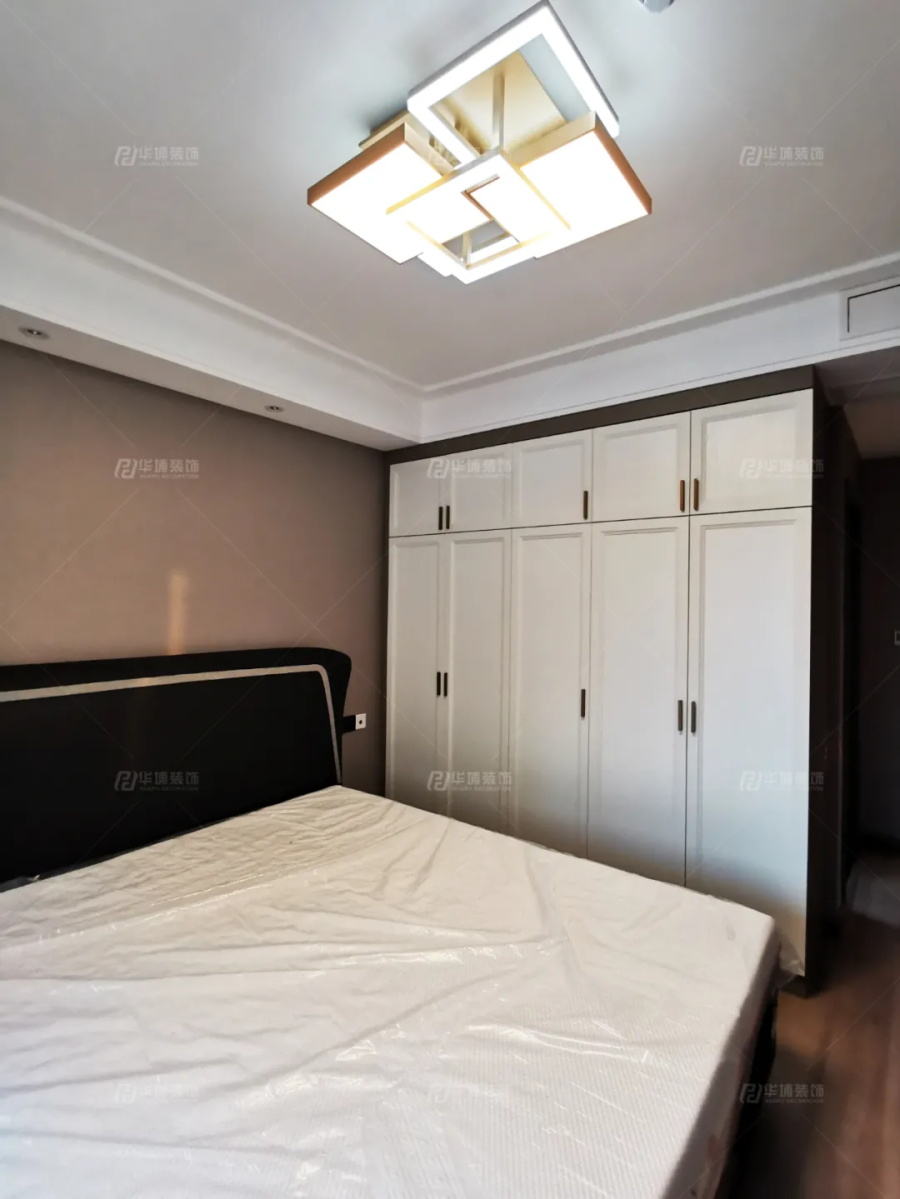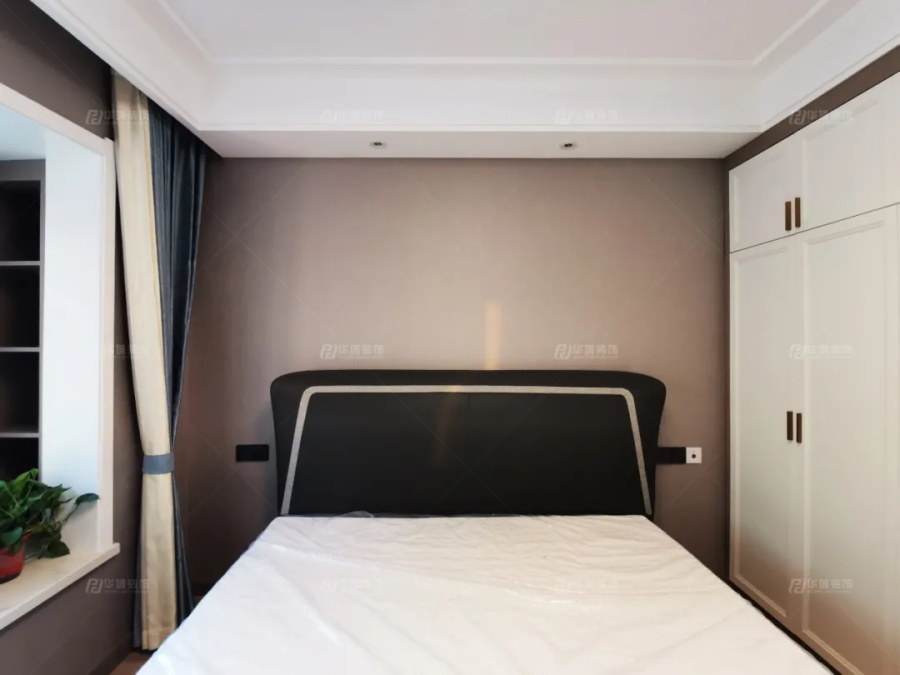 主臥是中性色彩,飄窗做開放格收納,頂天立地的衣柜,打造一個(gè)簡單溫馨的專屬空間。