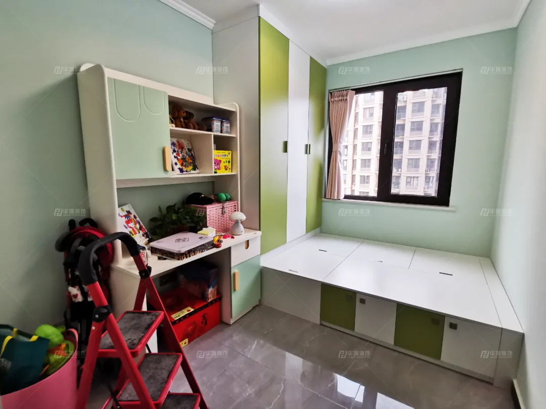 兒童房設(shè)計(jì)了榻榻米連柜書桌,不同色階的綠與白色的穿插融合,讓簡單的空間富于生機(jī),更加隨性。