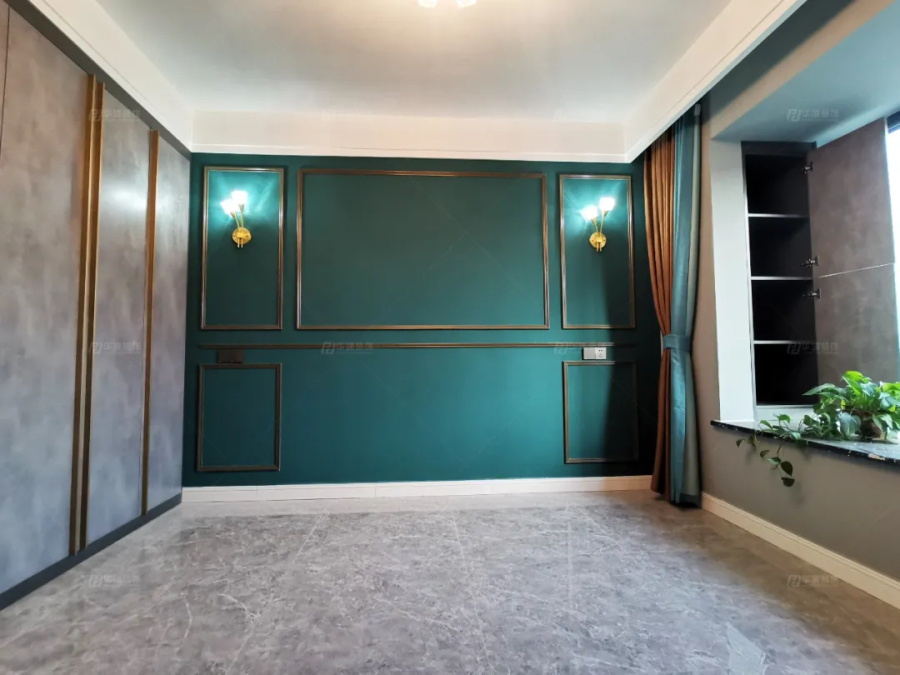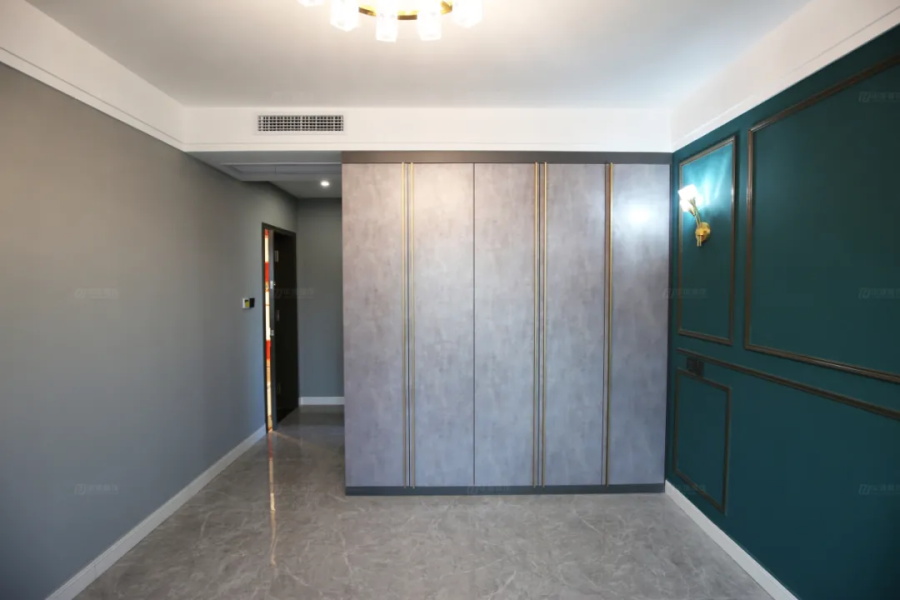 推開電視墻隱形門來到主臥,墨綠色渲染,實木金屬條勾畫,靜謐宣和的空間又多了分質(zhì)感的魅力。