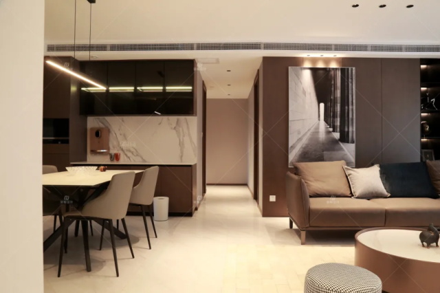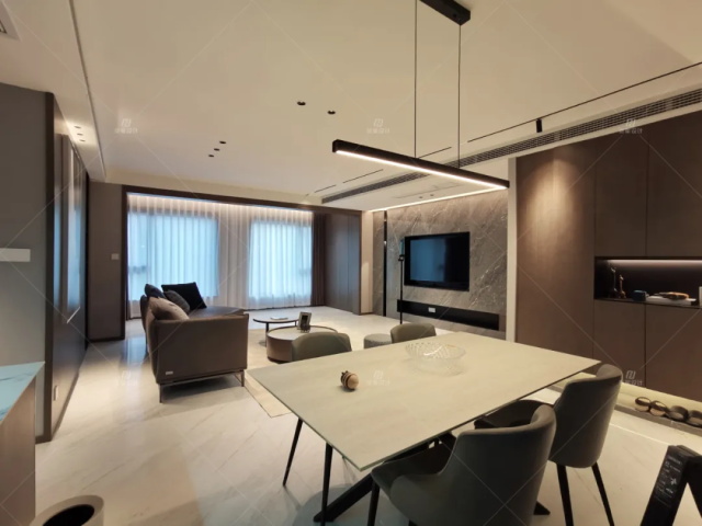 本案業(yè)主是三世同堂,老人同住,對(duì)空間的訴求就是要干凈大氣,不喜繁雜。設(shè)計(jì)師以現(xiàn)代簡(jiǎn)約風(fēng)定義空間,全房無(wú)主燈設(shè)計(jì),融入適量的輕奢元素,來(lái)塑造一個(gè)既有品位、舒適度也很高的生活空間。