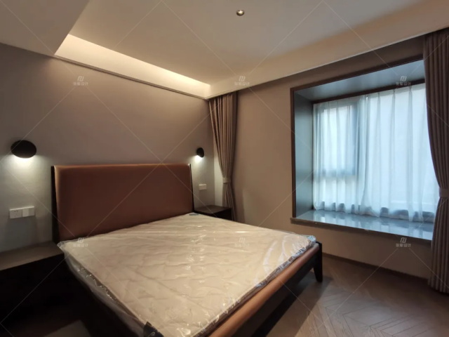 設(shè)計(jì)亮點(diǎn):無(wú)主燈設(shè)計(jì)、黑色元素壁燈、內(nèi)嵌式電視