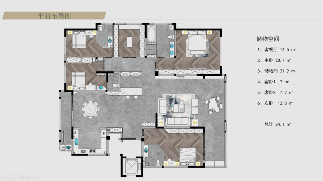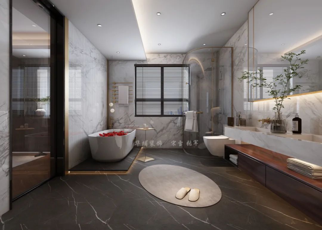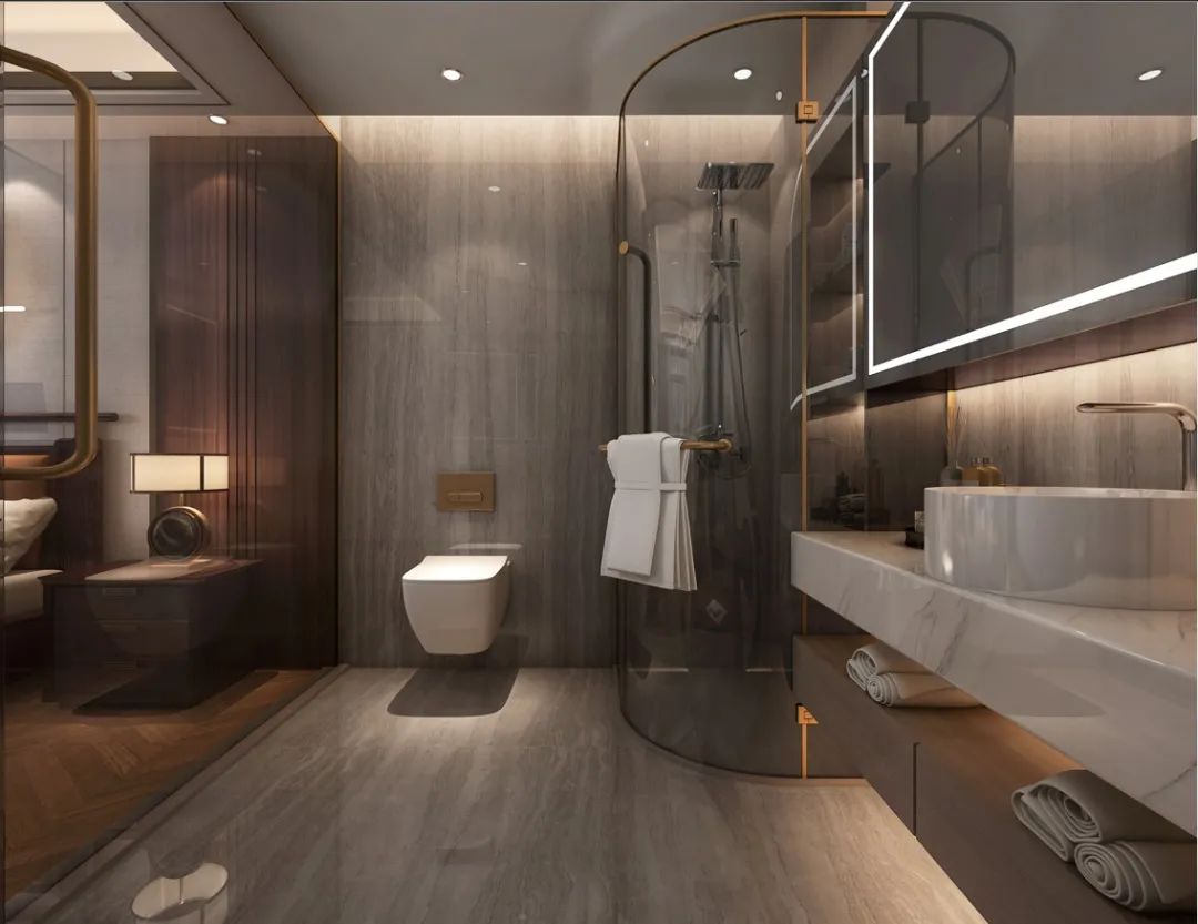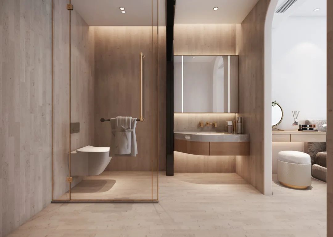在平面功能性規(guī)劃之初,設(shè)計師就給每個臥室布局了專屬衛(wèi)生間,便利每一個家庭成員的生活。