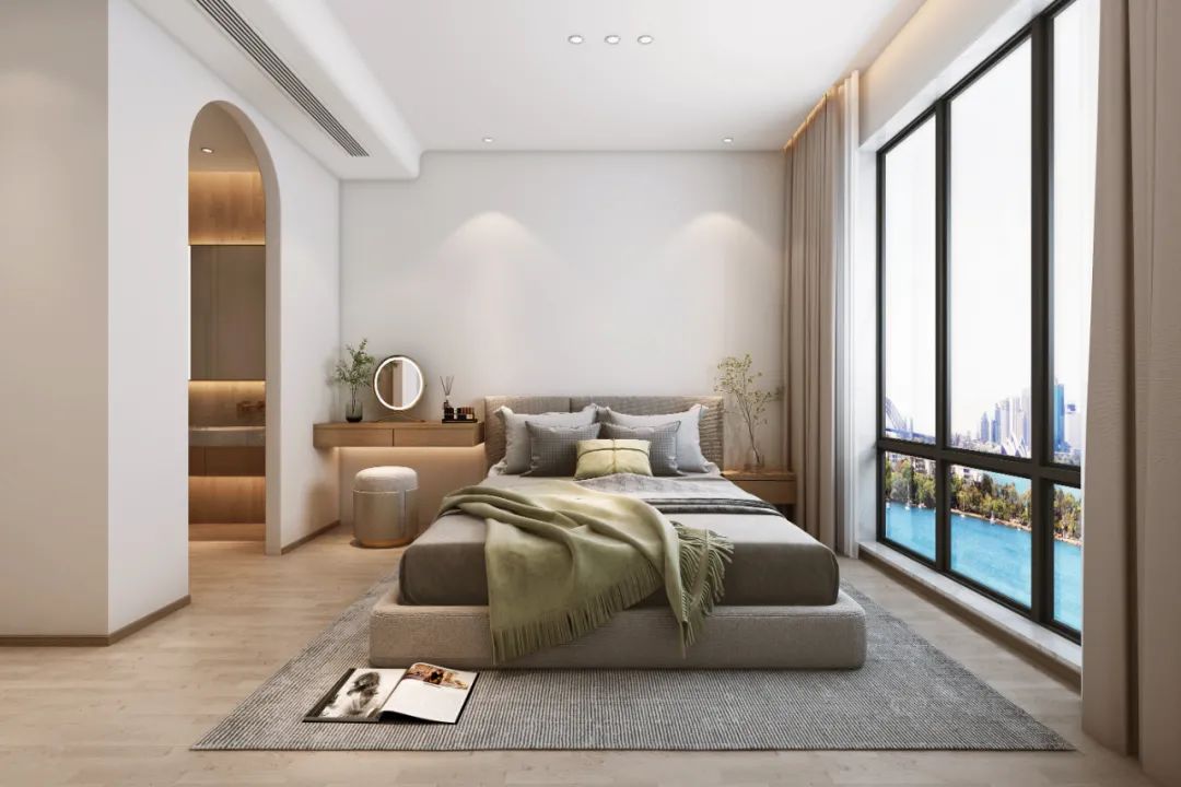 次臥的設(shè)計傾向于現(xiàn)代的簡約與柔和,莫蘭迪色系的融入,讓整個空間更加佛系,充滿了舒適的質(zhì)感。