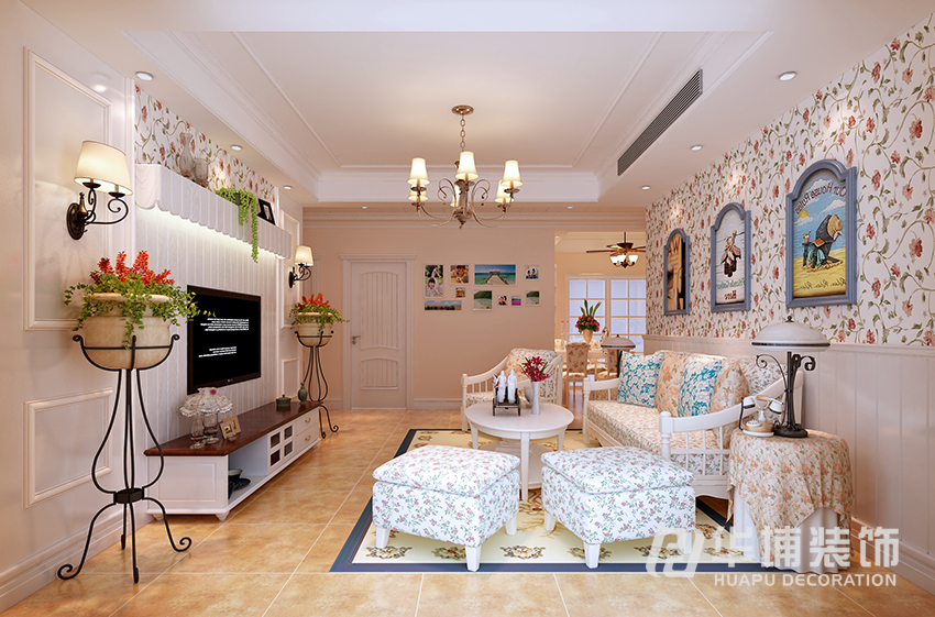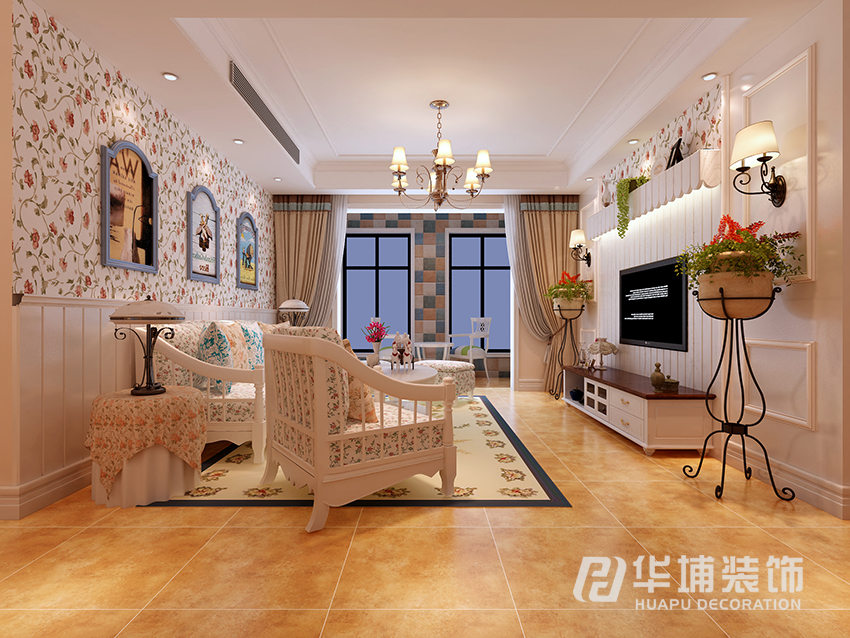 慣用了風(fēng)格里面的特點 上墻碎花壁紙 下墻白色墻板 和客廳的正面起到呼應(yīng)的效果沒有過多華麗的造型 后期加以軟裝掛畫作為點睛。