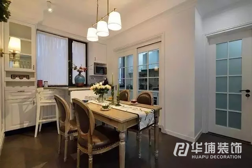 餐廳一眼給人的感覺是溫馨舒適,有種家的味道滲于其中。做舊的橡木灰餐桌椅與溫暖的灰藍色搭配,既不花俏,又不會過于單調。