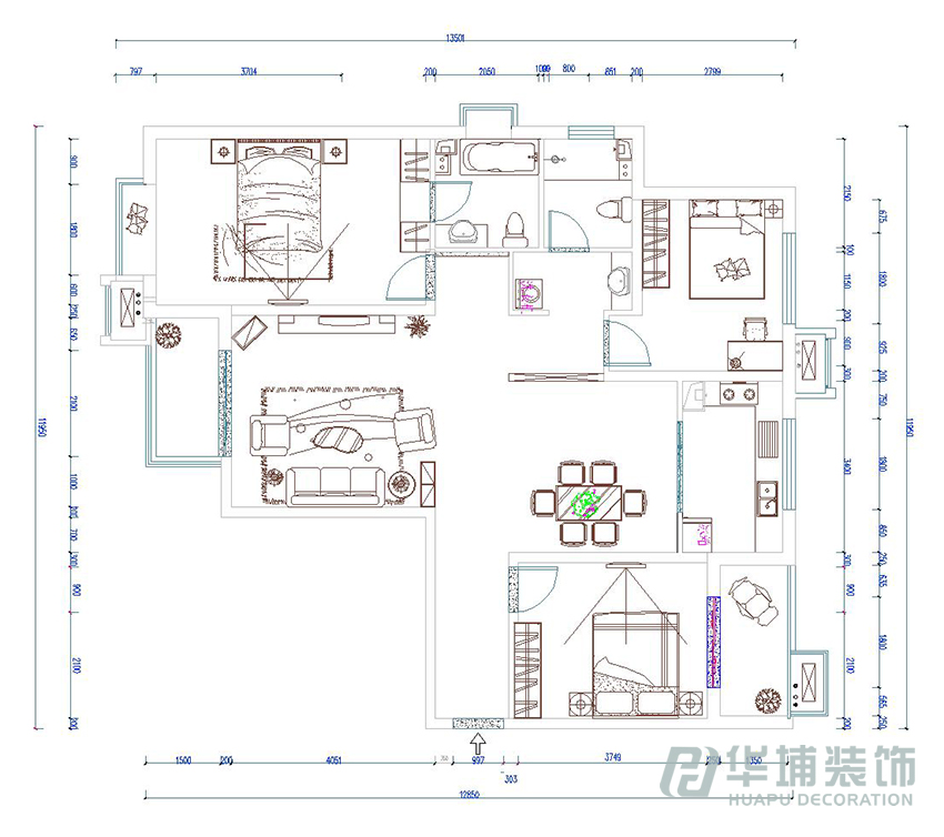 本案例的業(yè)主是50歲左右的事業(yè)單位員工,喜歡中式的古樸典雅。整個房間的設(shè)計重點就是客餐廳區(qū)域,在原始結(jié)構(gòu)戶型的基礎(chǔ)上增加了一個雕花隔斷,技能把空間劃分的更加規(guī)整,又增添中式的典雅韻味。
