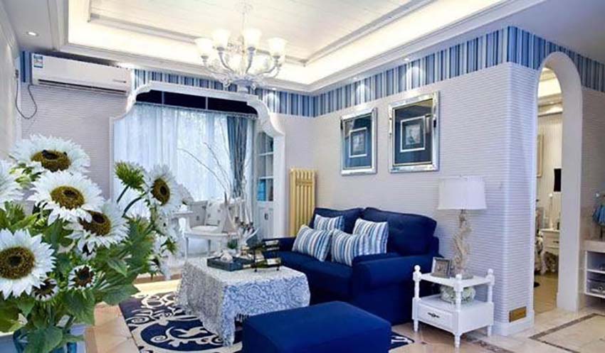 一般小戶型家庭建議不要做吊頂了,周邊走一條石膏線就很好看了!石膏線和天花刷成白色,墻體刷米白或者其他比天花稍微深一點(diǎn)的顏色,這樣就很顯層次感。