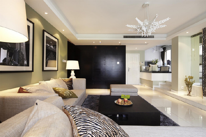 【163㎡綠地海珀蘭軒現(xiàn)代簡約風(fēng)】黑白與墨綠,整體空間輕重色調(diào)搭配恰到好處。