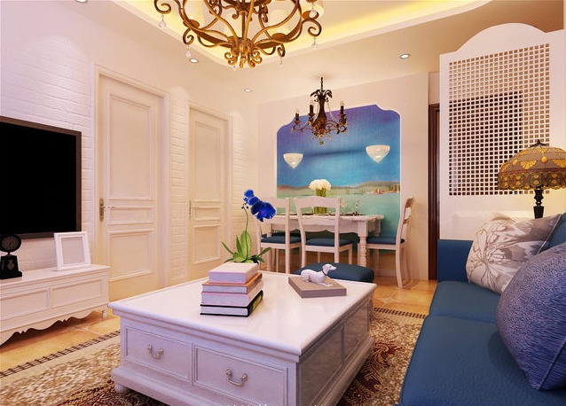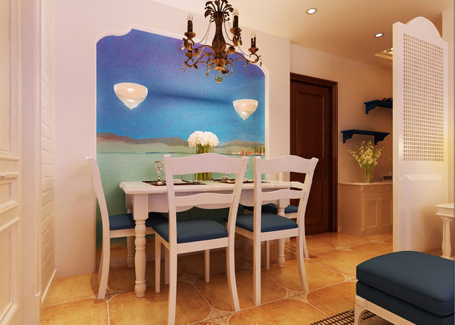 本案設計是地中海混搭風格,客廳大吊燈帶有些許的歐式風,沙發(fā)背景墻是屬于地中海風格,包括沙發(fā)餐廳,整體是在地中海風格的基礎上,加了些其他風格的裝飾,看起來還是溫馨舒適的。