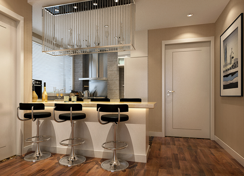 如何設(shè)計吧臺?吧臺的最佳高度是多少?如果是利用角落而筑成的吧臺,操作空間至少需要90厘米。如果設(shè)定單層吧臺,那么高度要在110厘米左右,雙層吧臺則應(yīng)該在80厘米與110厘米上下,其間的差距至少要有25厘米。一般來說,吧臺的最小水槽也必須在60厘米以上,操作臺面在80厘米左右,其他的可以按個人的需要來度量。購買水槽時,最好選購平底槽,這樣放置杯子時,才不會傾倒或撞壞,而且水槽深度最好在20厘米以上,這樣可以避免水花四濺。
