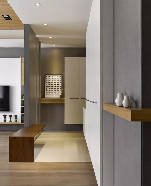 如果玄關(guān)不打算做成衣柜的話,中間部分空出來反而會更實用美觀。在空余位置放些擺件,可以讓整個家看起來更有活力。