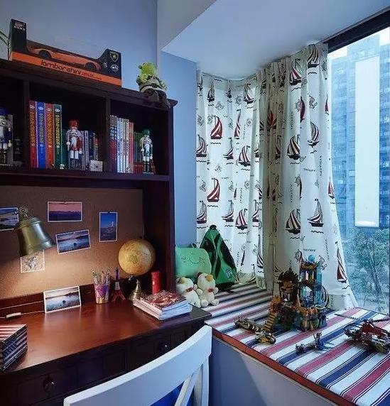 4、直接把飄窗改成書桌,下面做收納空間。優(yōu)點是采光比較好,空間利用合理。辦公學習累的時候可以看看外面,緩解疲勞。