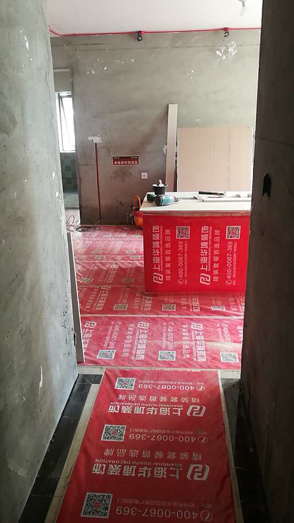 從入戶門開始,對地面成品使用專用保護(hù)膜進(jìn)行成品保護(hù),避免施工過程出現(xiàn)意外損壞。