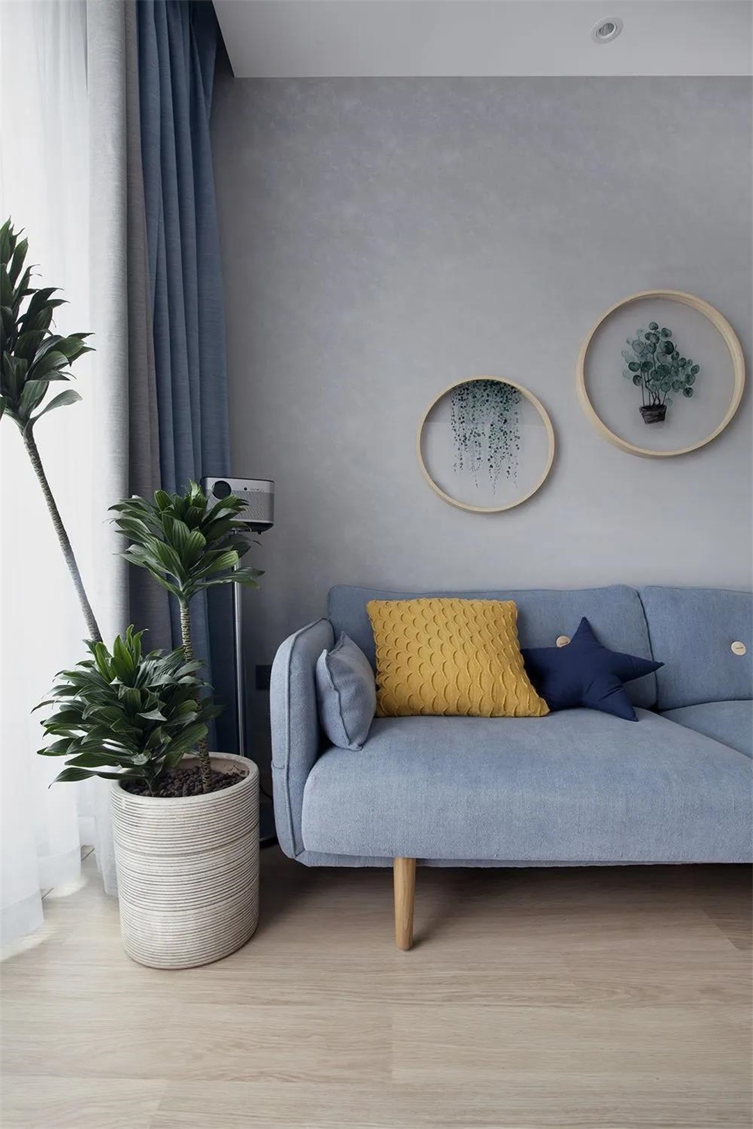 小朋友的世界是多彩的,所以沙發(fā)選用淺藍(lán)色,搭配黃色的抱枕,添置綠植,家里滿滿的活力。
