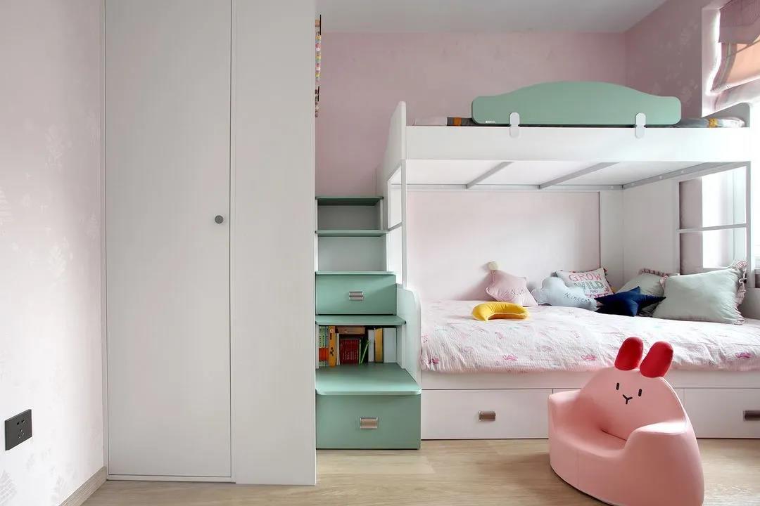 次臥是兩個小公主的房間,薄荷綠+少女粉,撲面而來的童真氣息。