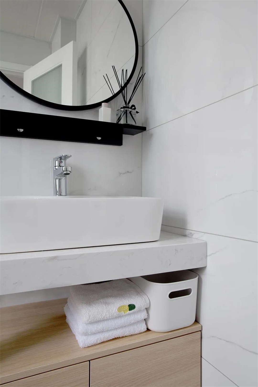 洗手池下設(shè)計了收納柜,可以擺放下女主人所有的護(hù)膚用品,非常實用。