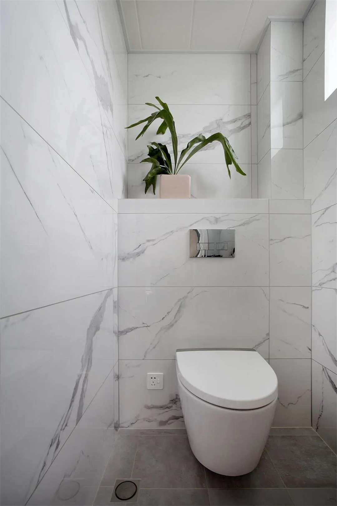主衛(wèi)采用干濕分離,方便使用。整體黑白色調(diào),很有線條感。大理石紋理墻磚,顯大氣利落。