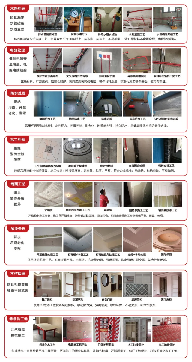華埔裝飾承諾:我們選用的所有主材基材都是董事長親自考察洽談、總裁親自落地實施,環(huán)保級別高于國家級標(biāo)準(zhǔn),假一賠十,高于市場價雙倍返差。我們是自有化工人,嚴(yán)格按照“綠金剛工程”108道工序標(biāo)準(zhǔn)化施工,給您超完美的裝修體驗。